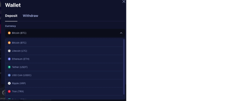 You’ll see a list of available deposit options, including Bitcoin (BTC), Ethereum (ETH), Solana (SOL), Tether (USDT), and other popular tokens. Select the one you'd like to use.